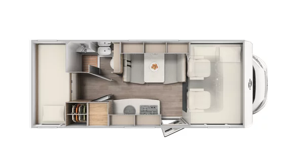 Pieni mutta tehokas. Caradon uusi alkovimalli on todellinen tilaihme, joka tarjoaa neljä täysikokoista, mukavaa vuodetta alle kuuden metrin kokonaispituudessa!