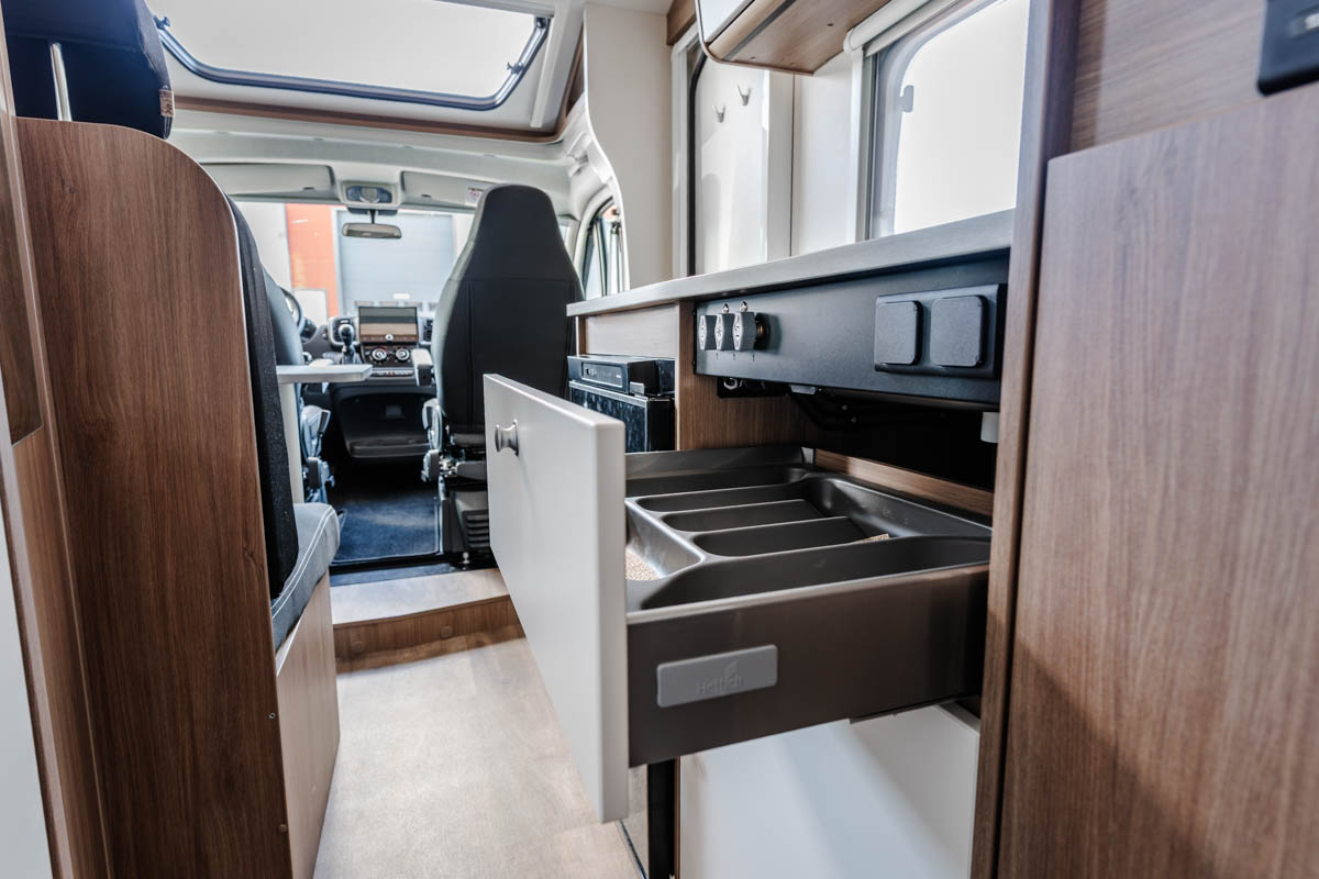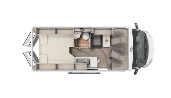 Kapea mutta näppärä. Kompakti, mukavalla saarekevuoteella varustettu Caradon Van kätkee sisälleen yllättävän paljon tilaa.