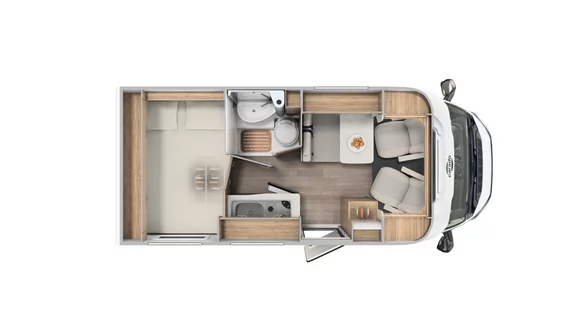 Caradon ketterä matkakoti pariskunnille. Kompakti malli Citroënin alustalla, tyylikkäät grafiitinharmaat erikoisteippaukset ja takaosassa poikittainen parivuode. Täydellinen auto luomaan unohtumattomia muistoja!